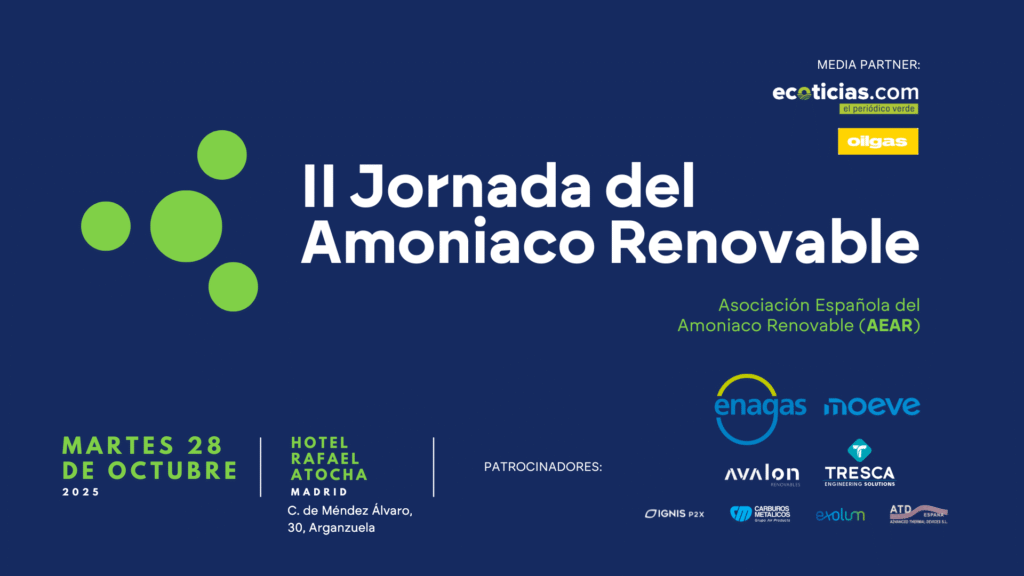 AEAR reúne a instituciones, puertos, asociaciones y empresas para analizar el desarrollo del amoniaco renovable en España La II Jornada del Amoniaco Renovable, organizada por AEAR (Asociación Española del Amoniaco Renovable) el 28 de octubre en Madrid, congregará a administraciones, puertos, empresas e instituciones de referencia para debatir los retos regulatorios, tecnológicos e industriales que […]